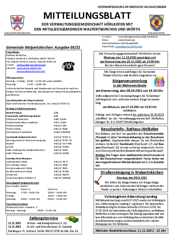 Mitteilungsblatt Walpertskirchen 05/21 (Oktober/November)