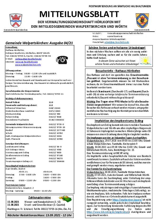 Mitteilungsblatt Walpertskirchen 04/21 (August/September)