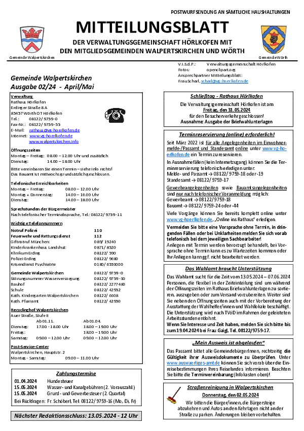 Mitteilungsblatt Gemeinde Walpertskirchen 02/2024 (April/Mai)