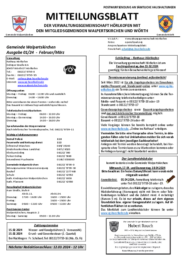 Mitteilungsblatt Gemeinde Walpertskirchen 01/2024 (Februar/März)