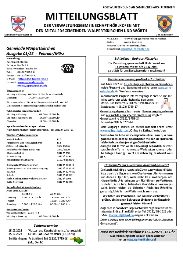 Mitteilungsblatt Gemeinde Walpertskirchen 01/2023 (Februar/März)