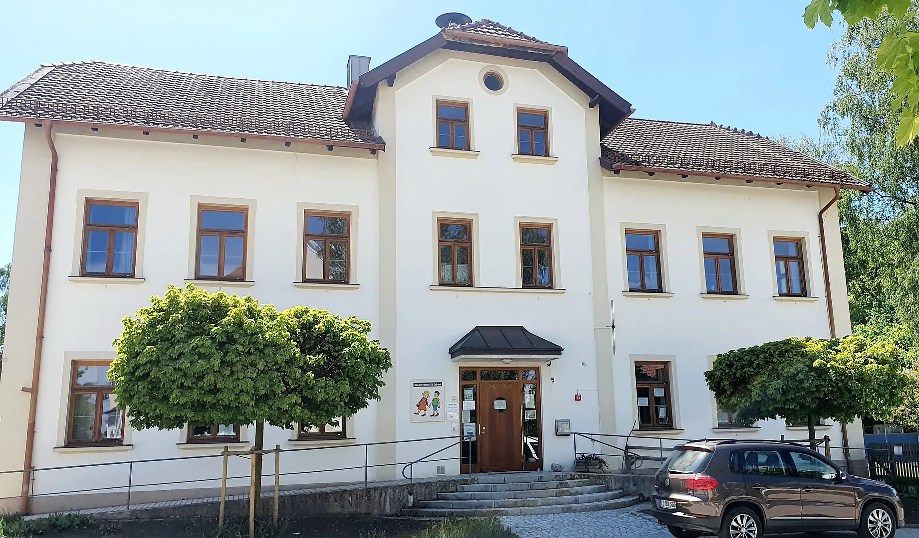 Da dieses Projekt höchste Priorität hat, wurden die Planungen für das Pfarr- und Gemeindezentrum zunächst auf Eis gelegt. Vorgesehen ist jetzt, das bisherige Kindergartengebäude als ortsbildprägendes Gebäude direkt am Dorfplatz nach dem Umzug des Kindergartens zu sanieren und als Gemeinde- und Pfarrzentrum auszubauen.